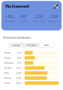 You read that correctly… my NYT Crossword streak is 1,124 as of this writing.
